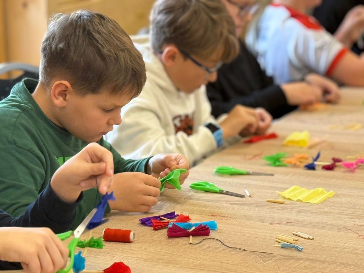 W Wiejskim Domu Rzemiosła w Podmąchocicach spotkaliśmy się z gawędziarką i twórczynią ludową Ewą Siudajewską, która opowiedziała o bożonarodzeniowych zwyczajach ziemi kieleckiej, posługując się m.in. lokalną gwarą. Podczas warsztatów rękodzielniczych uczniowie ze szkół w Leszczynach i Bęczkowie wykonali przepiękne, tradycyjne łańcuchy ze słomy i bibuły.