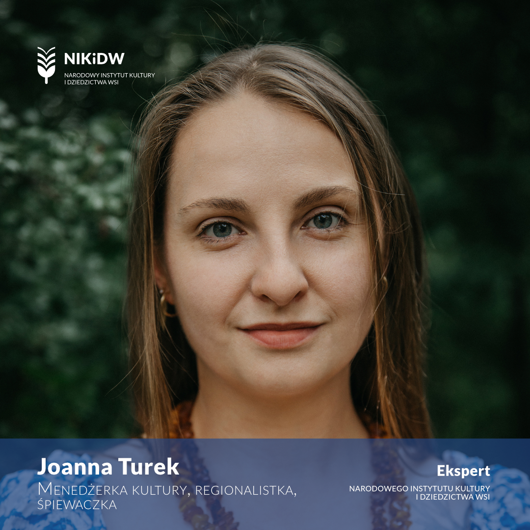 Absolwentka zarządzania na Uniwersytecie Warszawskim, turystyki i rekreacji na Akademii Wychowania Fizycznego Józefa Piłsudskiego w Warszawie oraz zarządzania projektami turystyki zrównoważonej na Université de Toulon. Kurpianka z krwi i kości, prezeska fundacji działającej na rzecz kultury i turystyki regionu. Pomysłodawczyni i realizatorka licznych projektów poświęconych dziedzictwu polskiej wsi – w tym festiwali i wydawnictw muzycznych. Laureatka wielu nagród za działalność kulturalną i animacyjną. W NIKiDW pracuje w Dziale Programowym. Śpiewaczka w tradycyjnym rycie, uczennica wiejskich śpiewaczek z Kurpiowszczyzny. Propagatorka powrotu do źródeł i pierwotnych funkcji kultury ludowej – poprzez praktykę, współuczestnictwo i wspólnotowe przeżywanie.